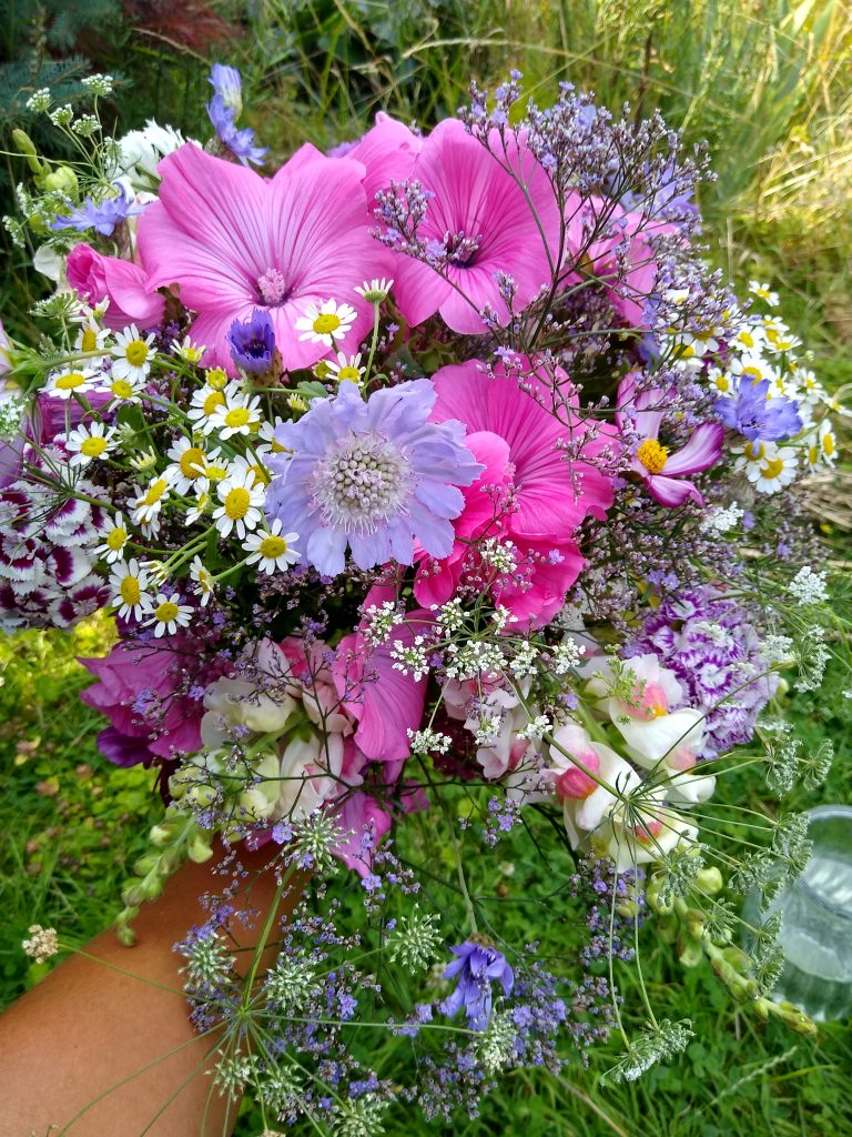 At Nature’s Posy I grow all of my own flowers on my 1/2 acre field at Frank’s Farm in Elsworth, Cambridgeshire. All posies and bouquets are unique and feature the best of what is available on the field that day. My main season is from March to November.