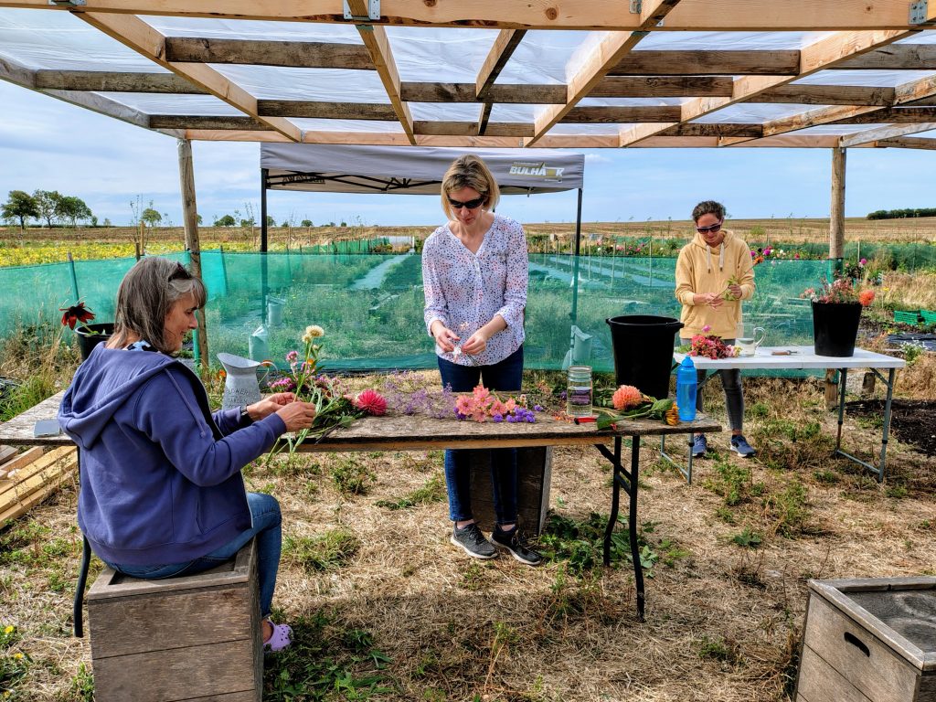We will spend an hour or so touring the flower field and selecting some beautiful blooms. Once picked, and whilst they condition we’ll have a quick cuppa and a piece of cake, before getting on to arranging the flowers into a seasonal arrangement.